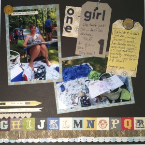 So I decided to “play along” with today’s prompt (there is an email every morning with a “prompt” for a topic/technique/idea of what to work on for that day….you can use it or do your own thing) and did a layout about myself, which I hardly ever do. So you get to see me in a bathing suit at the pool ha!