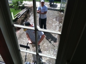 After a big day of demolition and then a rainy weekend work is commencing again on the new front steps and walk at the house !
