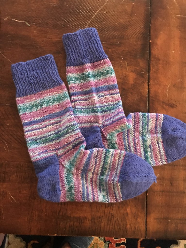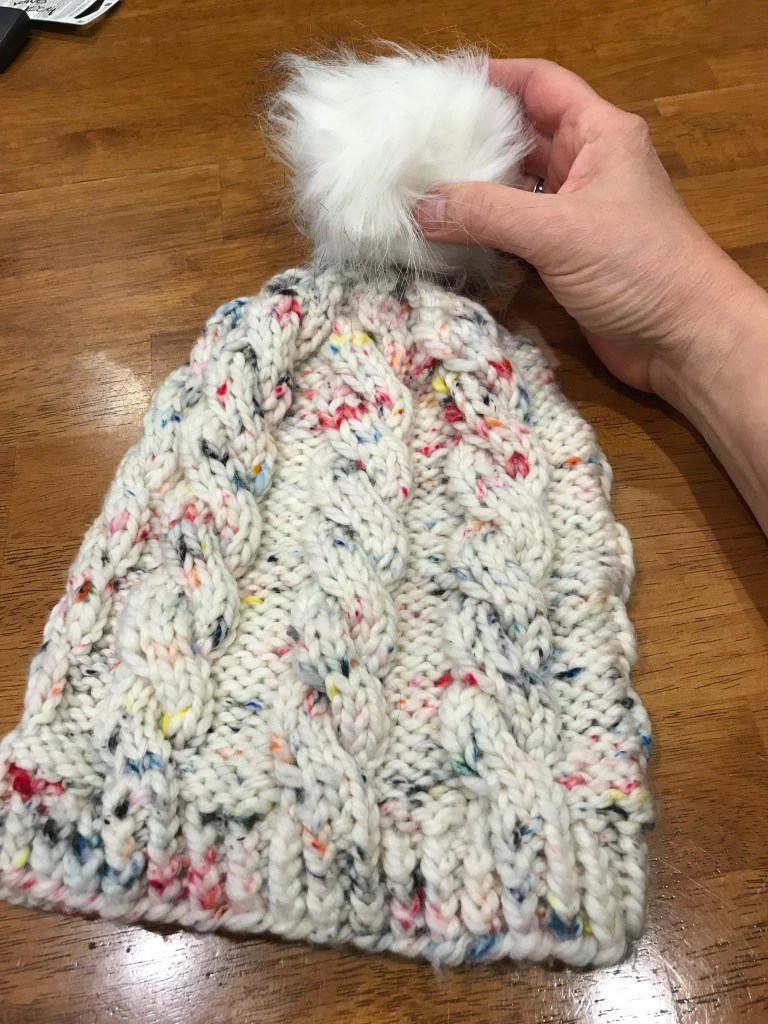 Knitting makes included: My second pair of socks in Regia Perfect yarn : Lace Cowl (can’t remember the pattern now) : Cable hat out of Madeline Tosh Home (just needs the faux fur pom pom I bought last weekend) : Cable scarf out of Madeline Tosh ASAP (needs to be re-blocked!) : Baby sweater for our contractors first baby ! There was also a lot of filler knitting on the scrap blanket that is always nearby and also STILL working on the brioche shaw…which I should finish before I am eligible for Social Security!