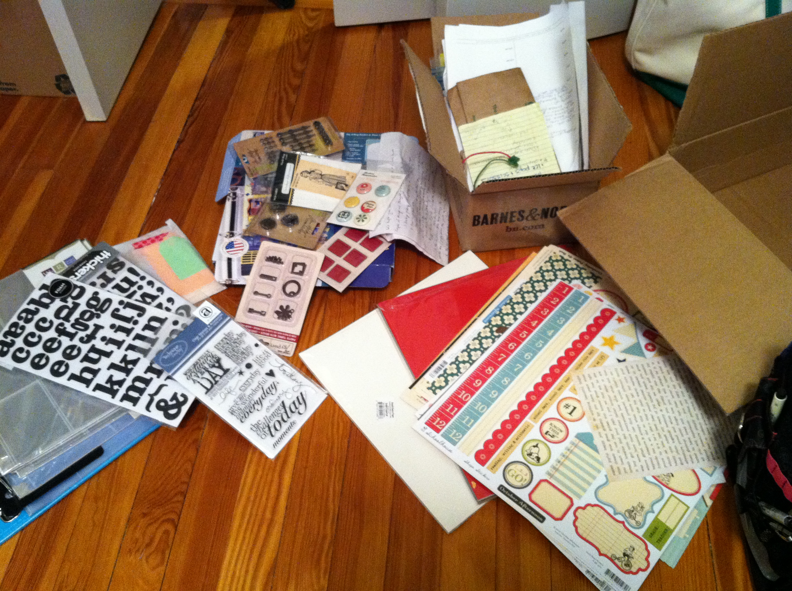 I figure at least it’s all in one place and pretty organized.  My photos are all in smart albums in iphoto sorted by date, my details are all in a file and ready to go,  I have the album, page protectors, and supplies…all I have to do is put it all together…